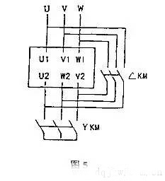 三相異步電動機的控制由定子電流的相序決定,從載流相到電流滯后相。如果你想改變控制,你只需要改變?nèi)嗬@組中的電流相序。當(dāng)使用Y連接時,三相繞組的電流相序設(shè)置為u、V和w,電源電壓相序為Uuv、Uvw、Uwu,如圖2所示。無論何種連接方式,只要三相電網(wǎng)電壓的相序保持不變,三相繞組的實際相序仍然是u、v和w,因此控制是相同的。因此,當(dāng)Y-△ 啟動時,其轉(zhuǎn)向不變。